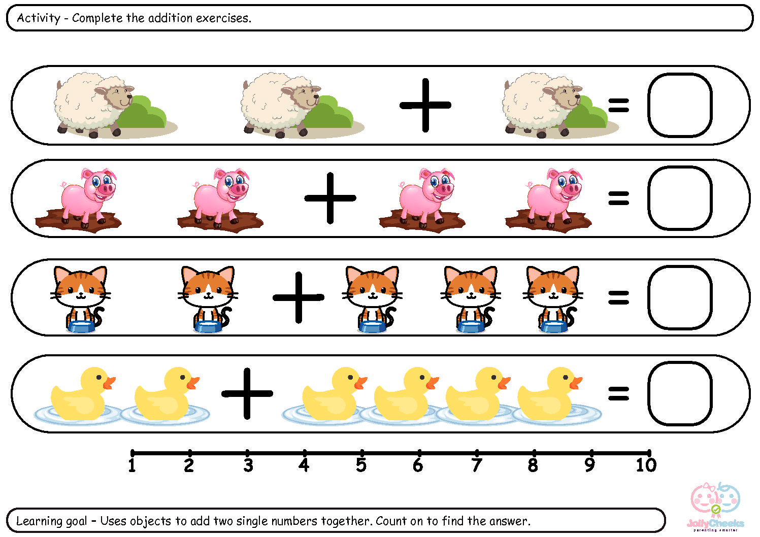 40-60M• Finds the total number of items in two groups by counting all of them.
