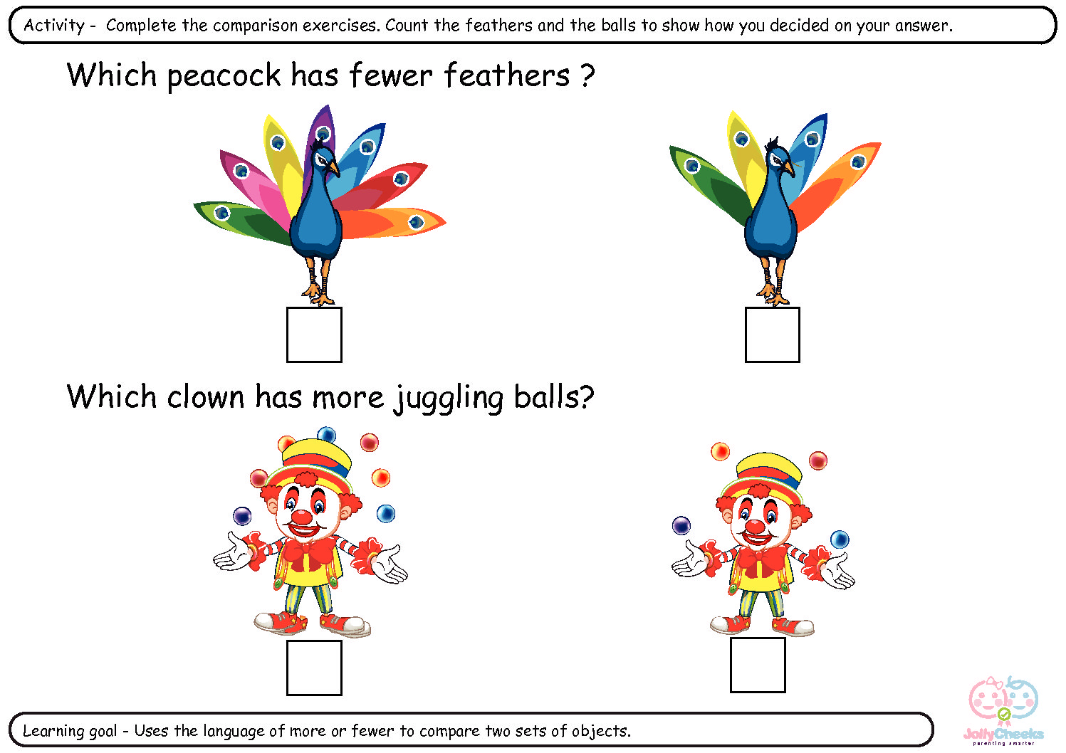 40-60m LG • Uses the language of ‘more’ and ‘fewer’ to compare two sets of objects.